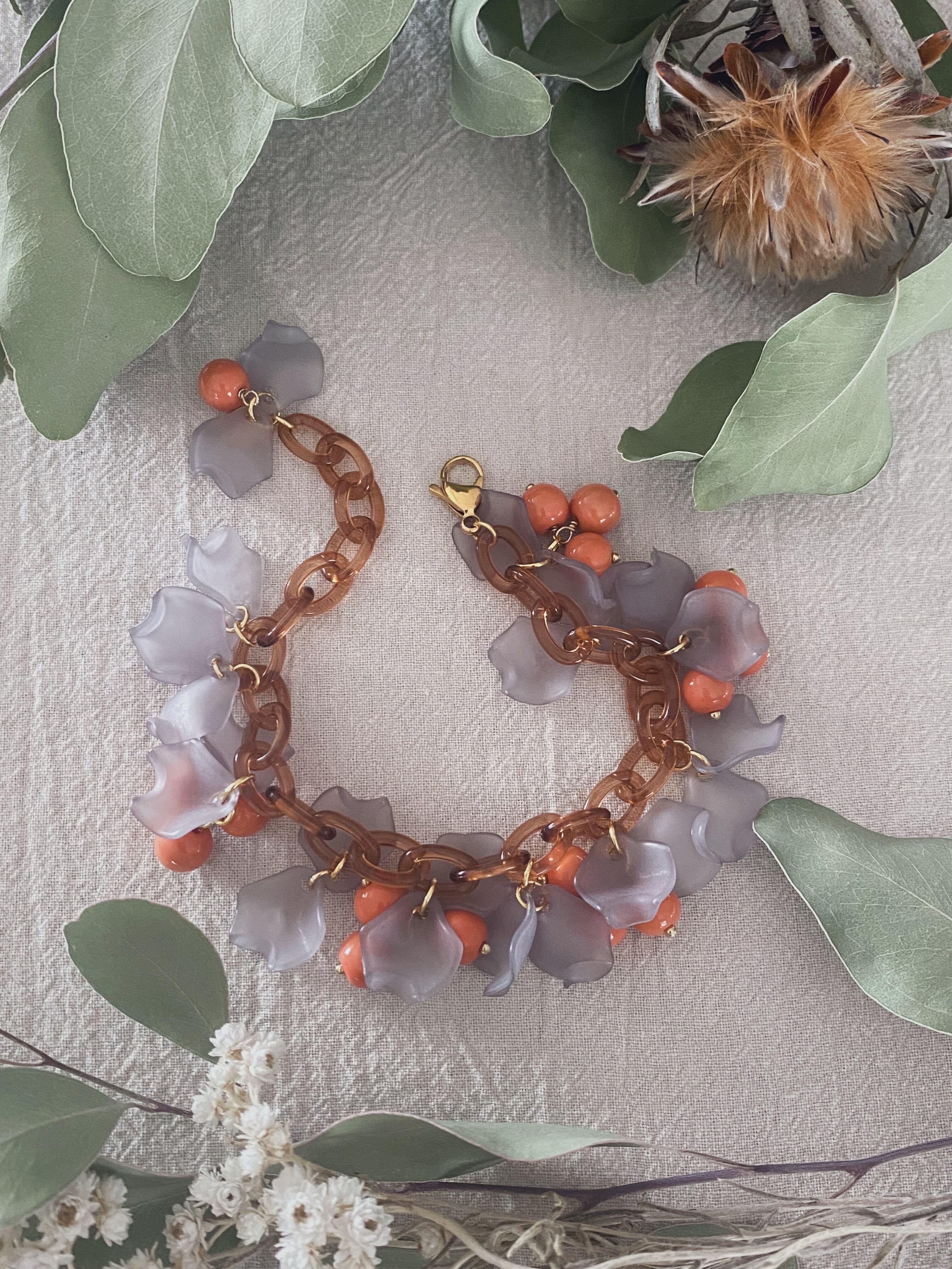 グレーが綺麗なリーフビーズを組み合わせて
